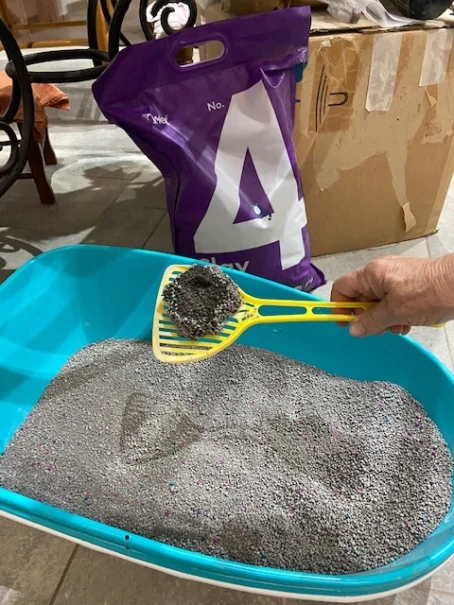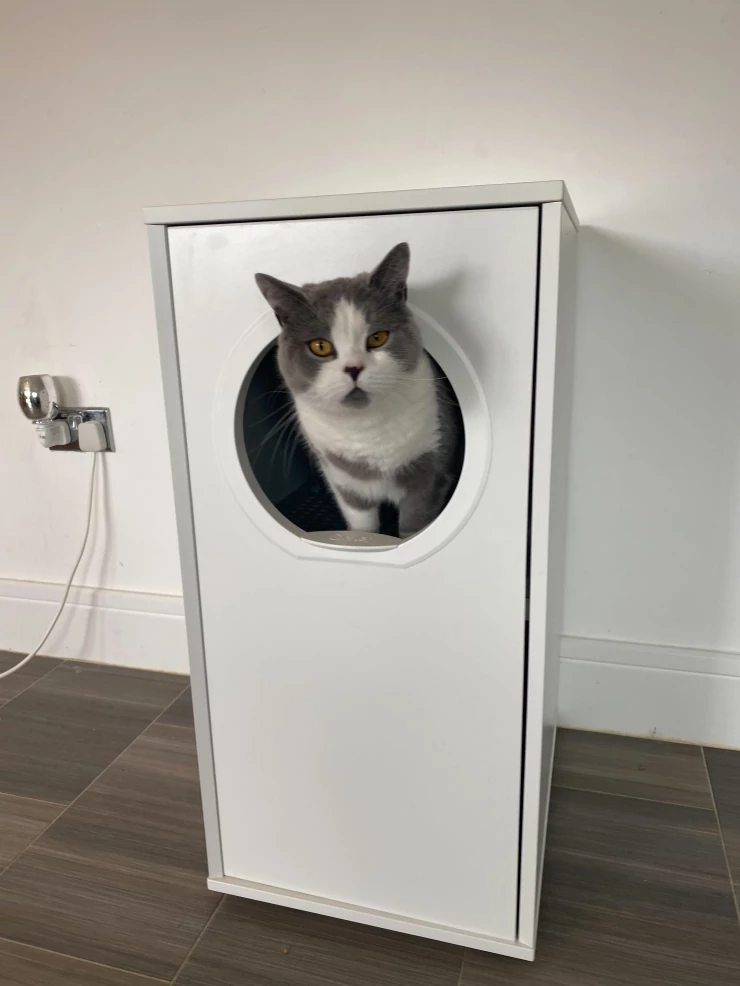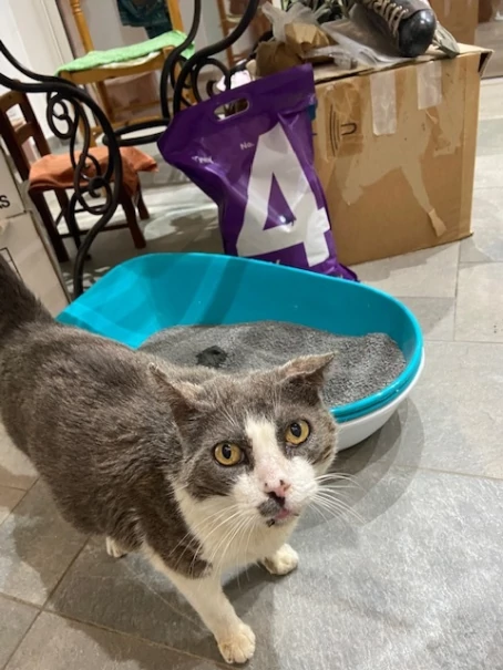 Caption: Cat in front of litter tray with Omlet cat litter 4 clay cat litter clumping