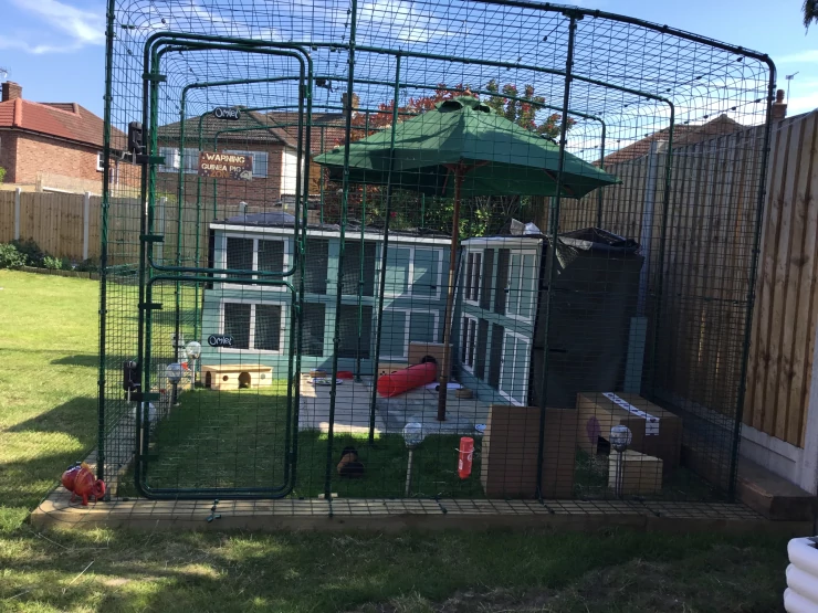 Caption: Zippi rabbit run with Zippi platforms and shelter