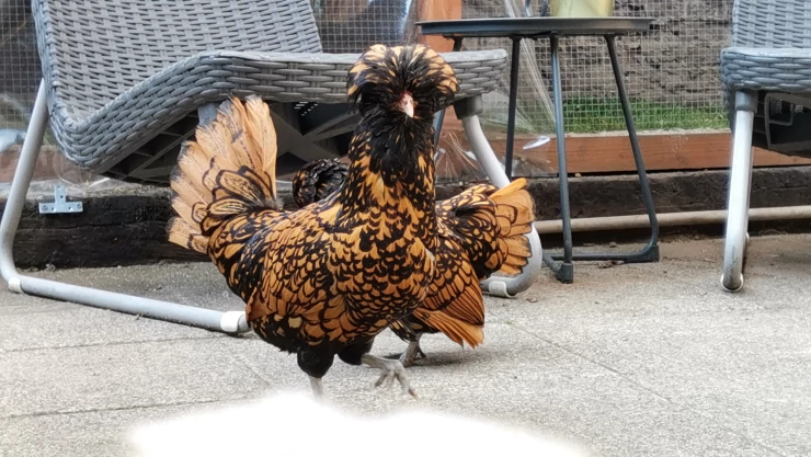 Caption: Polish chickens are great birds, Omlet own one called frodo!