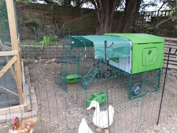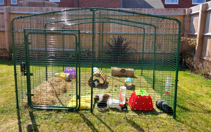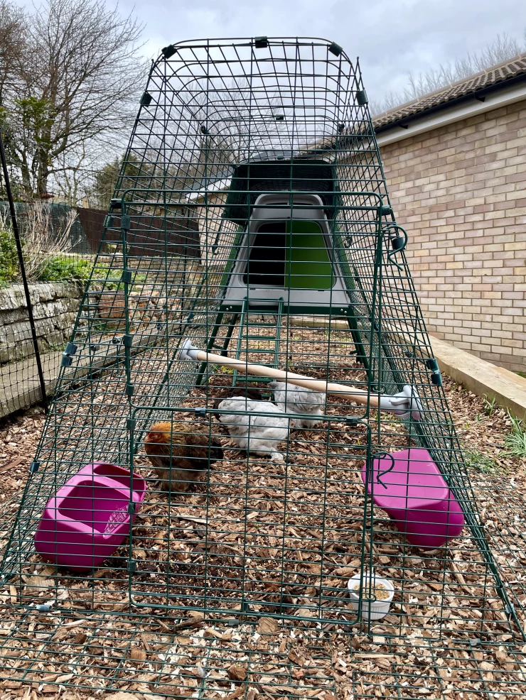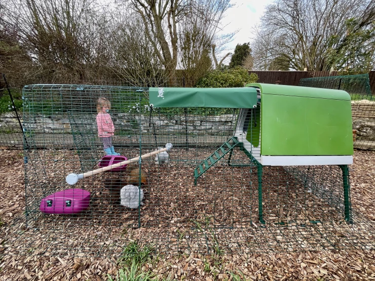 Caption: My four guinea girls absolute love their Omlet Eglu outdoor run. it is the perfect safe place for them to graze and play. i also love the fact that my daughter can sit inside and i can clean easily and access with ease.