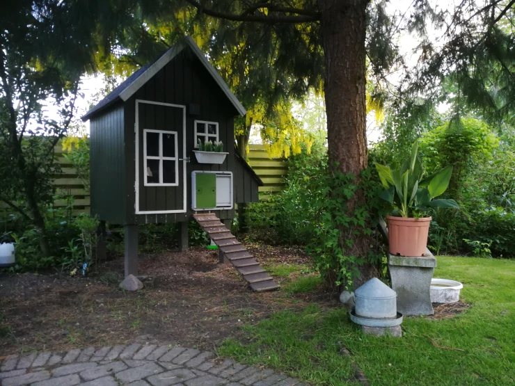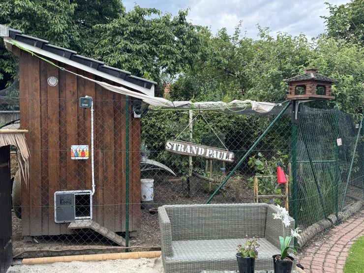 Caption: Homemade chicken coop with Omlet automatic door.