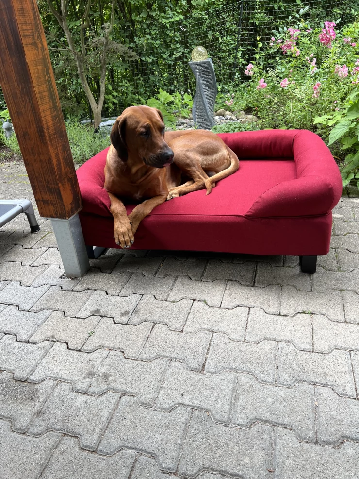 Caption: Great bed for our bayo! the feet were delivered and fitted later - everything is great! own chic sofa, well received right from the start! favourite place to chill in the living room!