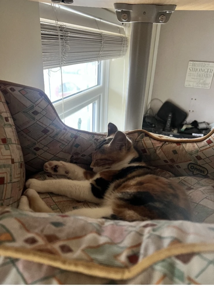 Caption: Biscuit loves her bed.