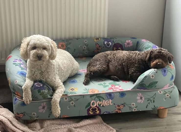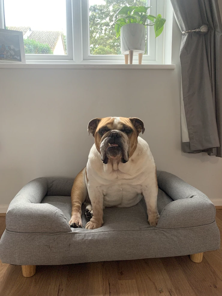 Caption: George loves his bolster bed in sage green