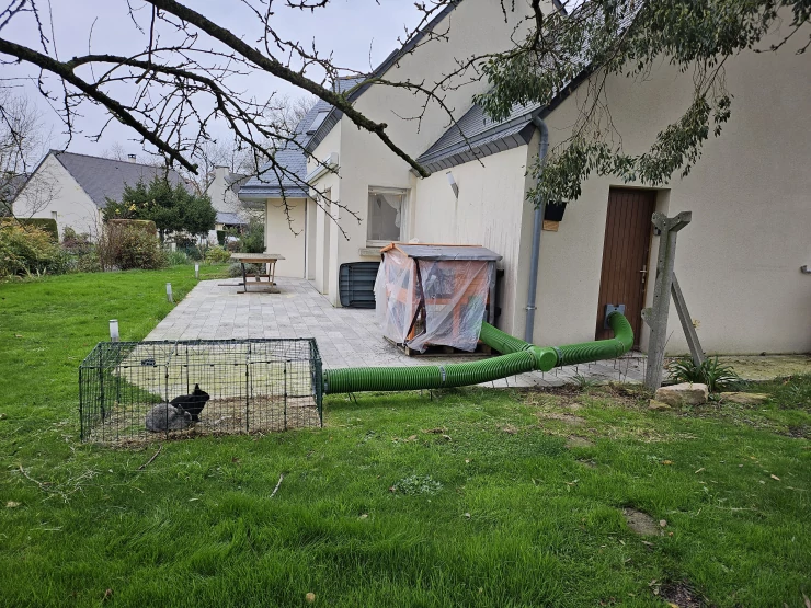 Caption: Rabbit enclosure with tunnel