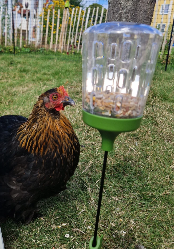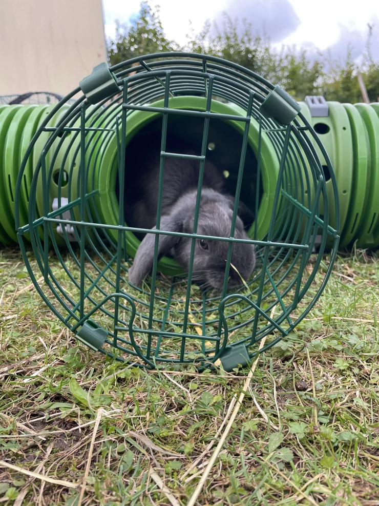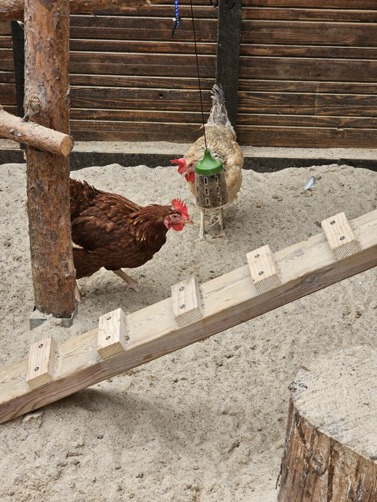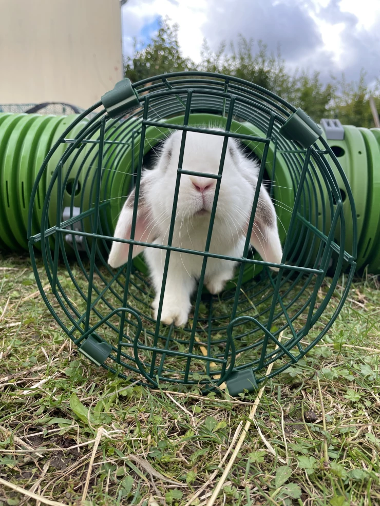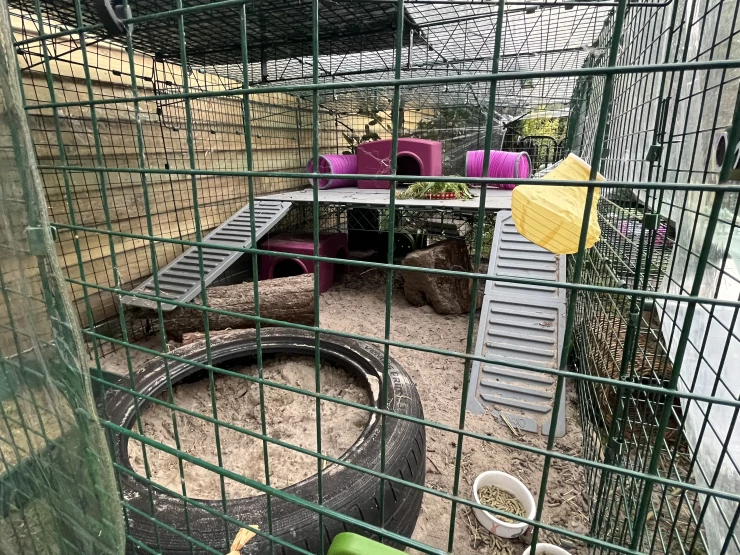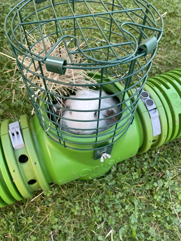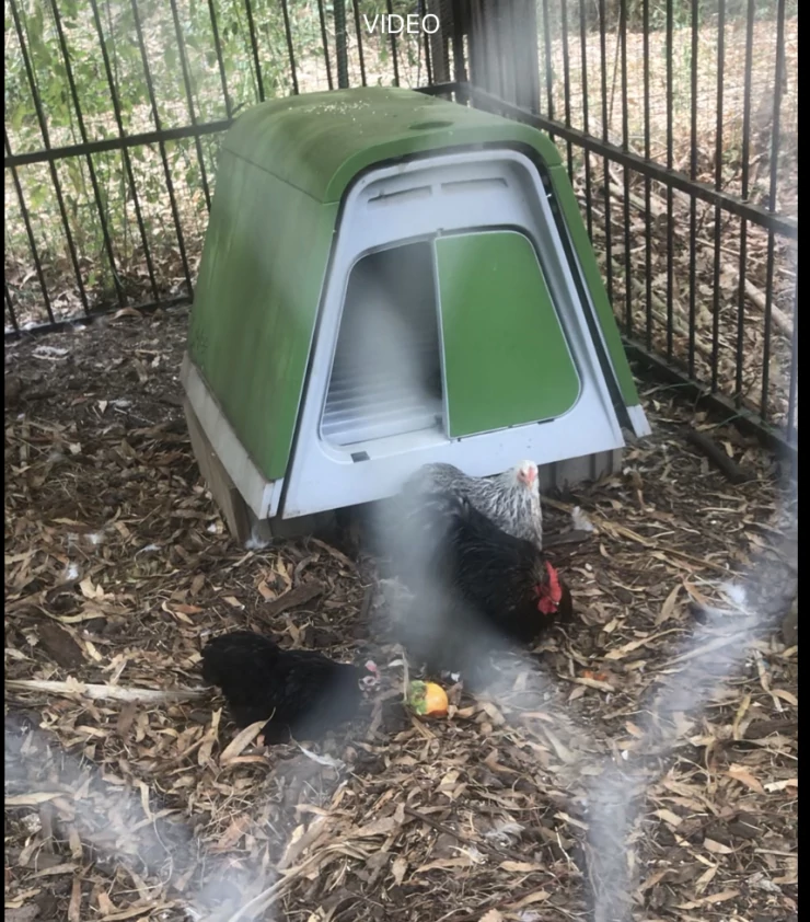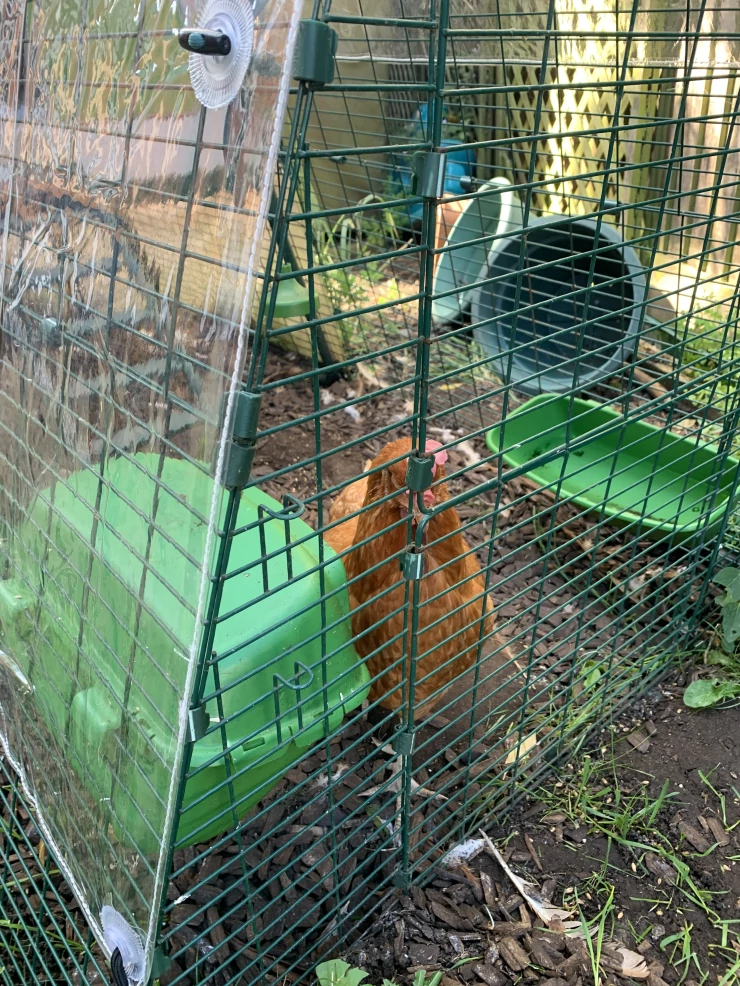 Caption: Maple likes her new clear run cover, but wishes her dear departed friend pecan was still around to enjoy it too