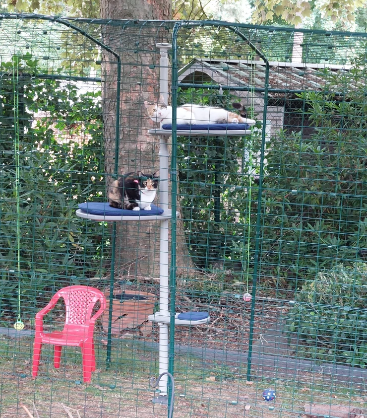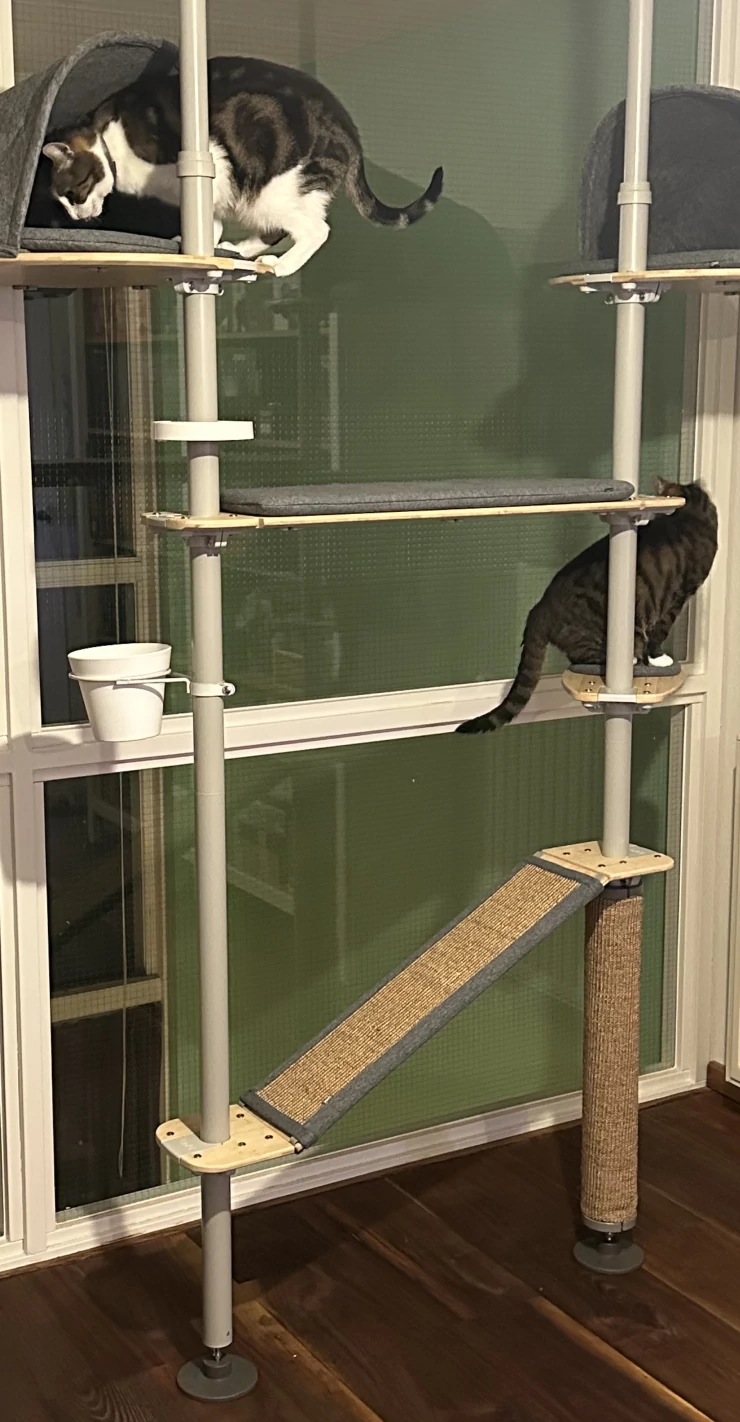 Caption: They are thoroughly enjoying the catio and the pole !