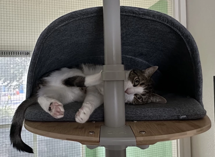Caption: We love our cat andshe lovers her new catpole~