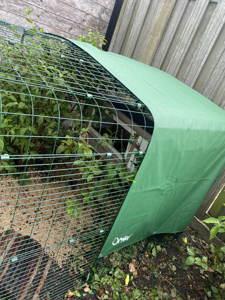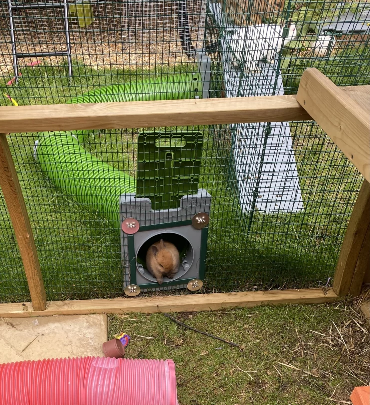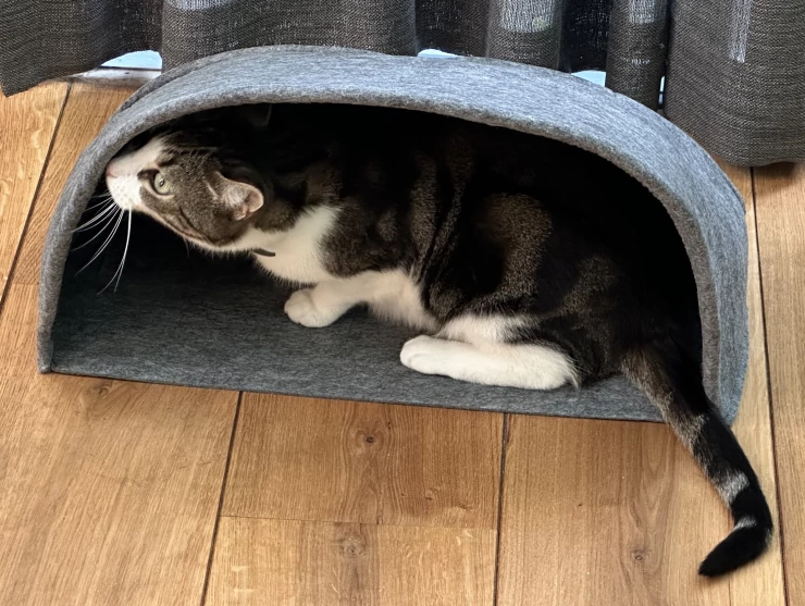 Caption: Nutmeg sitting in tunnel entrance.