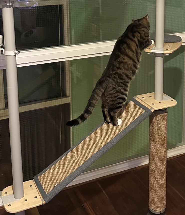 Caption: Cats climbing for the first time