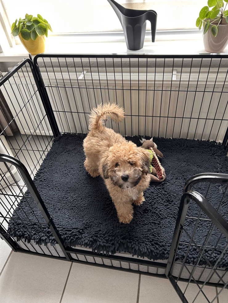 Caption: Otis in the playpen