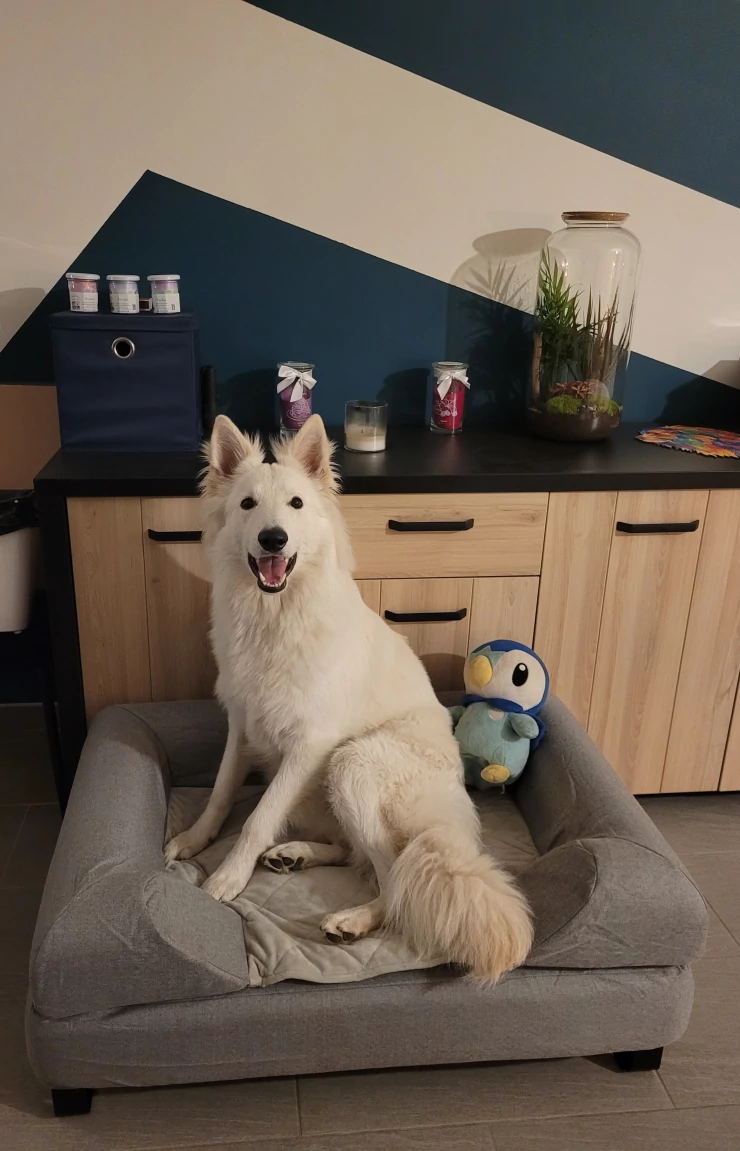 Caption: Thor loves his new bed!