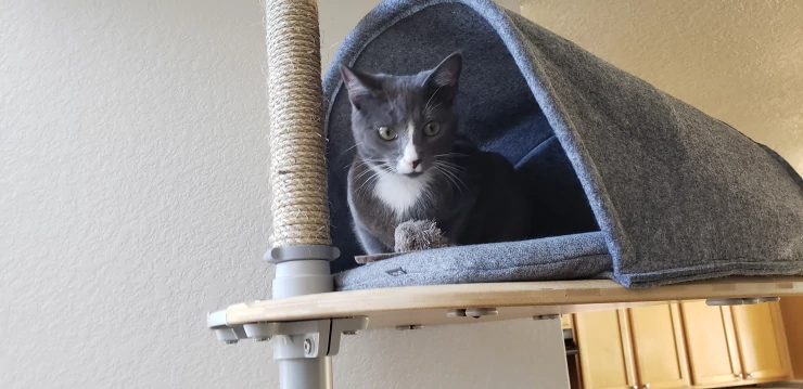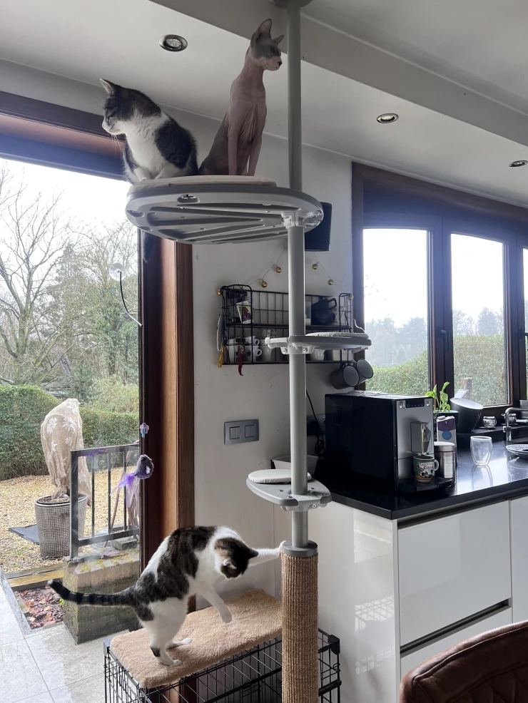 Caption: We are very happy with the outdoor climbing pole. it is now in the kitchen until the cats can Go to the run outside. this way, we can enjoy the climbing pole all seasons. we will probably expand it in the future.