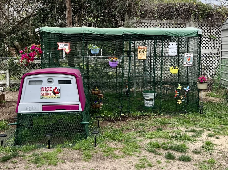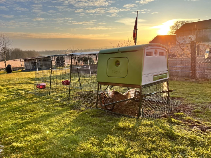 Caption: Eglu Cube with 4 metre outlet