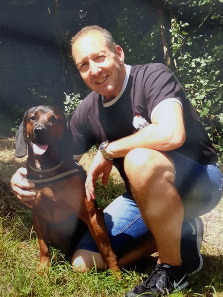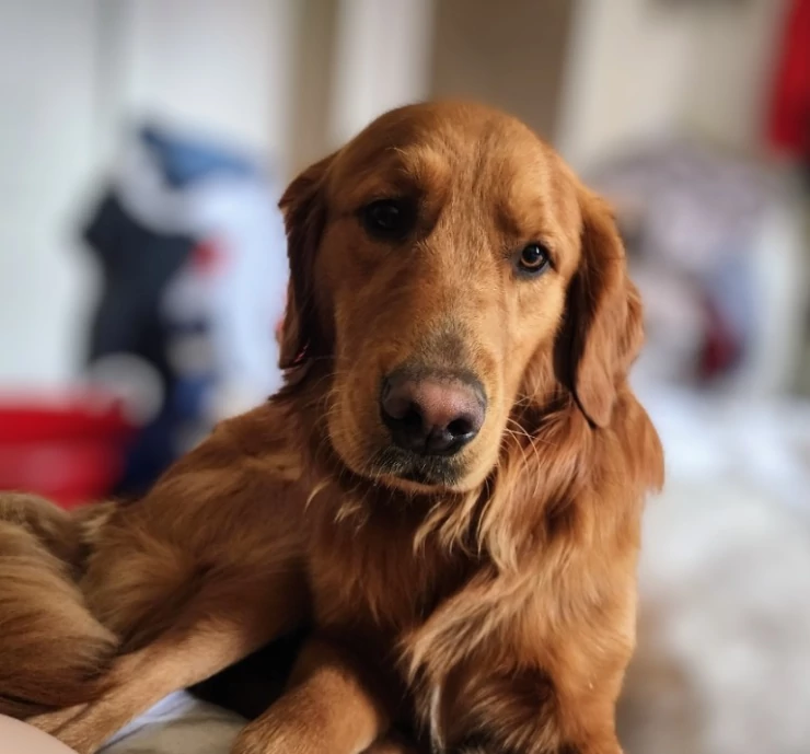 Caption: This is my loveable floofy boomer. he really is the sweetest pup ever!! (once you get past the land shark phase!!) lol