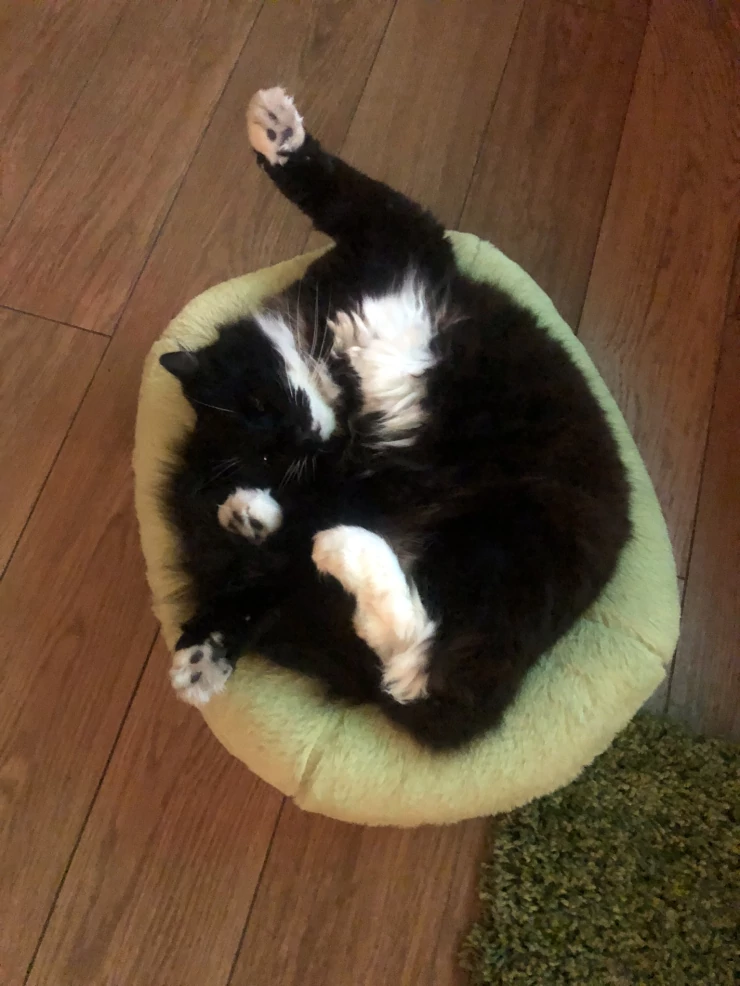 Caption: He loves his bed so much, i miss my lap cat!