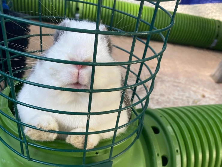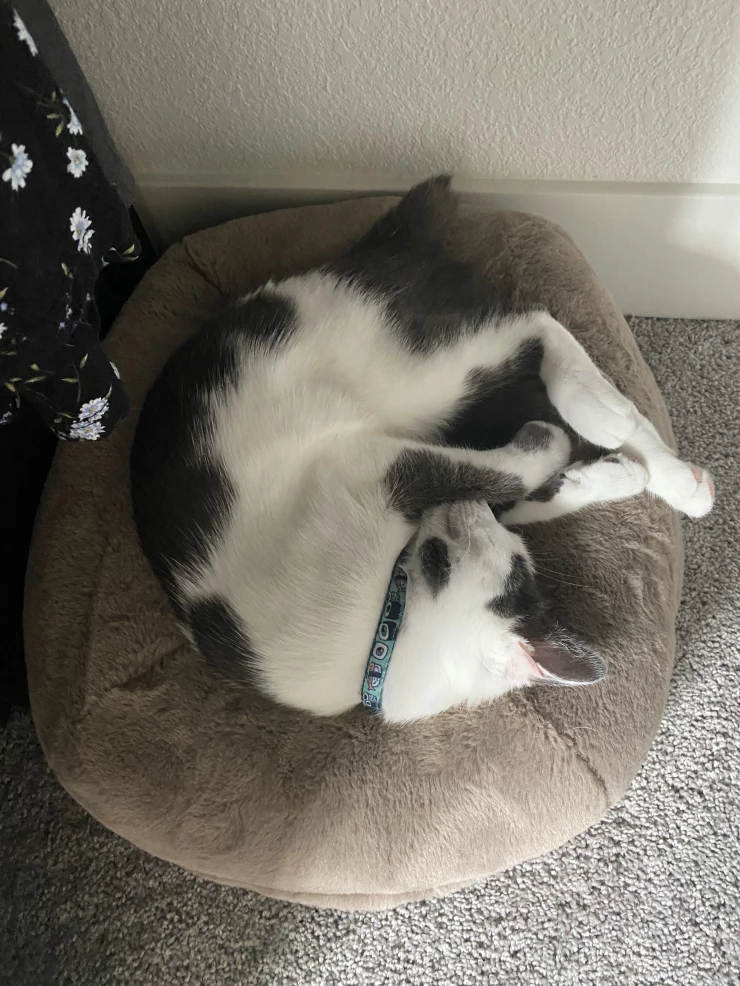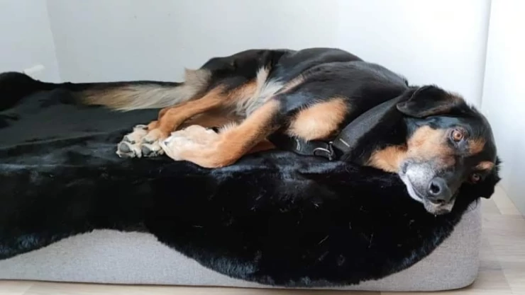 Caption: Joya and her bed of Luxe , she has never loved a basket as much as this one ! there is no more to do than to add the pretty and useful railing feet that we have just received ???? ! thank you Omlet!