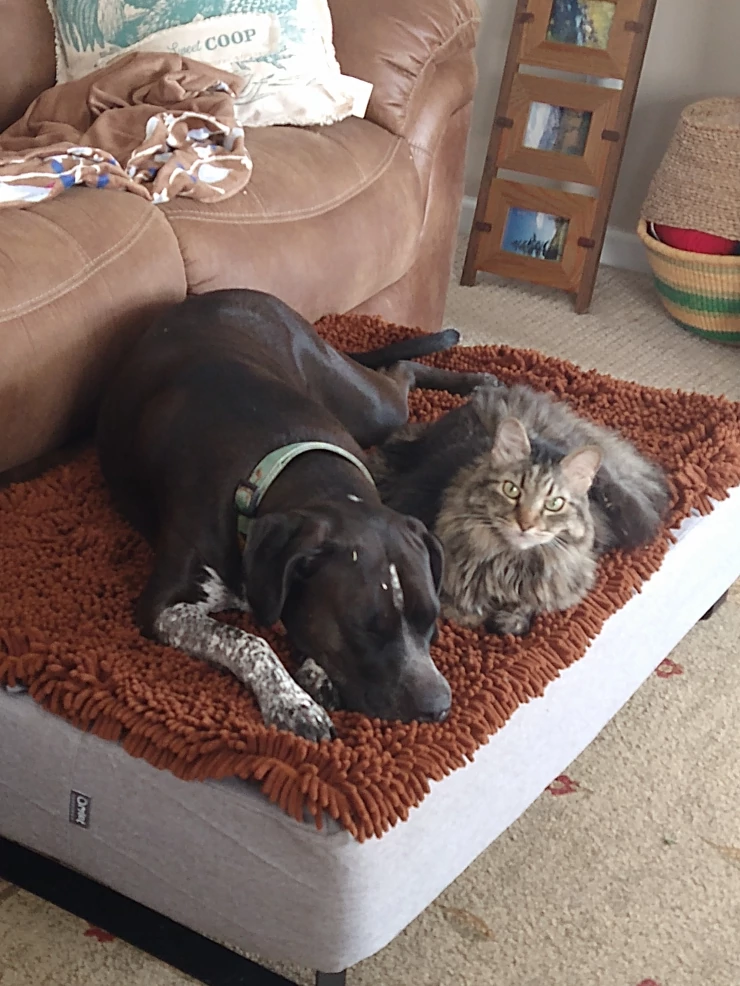 Caption: June carter and her brother dinky both love their Omlet bed!